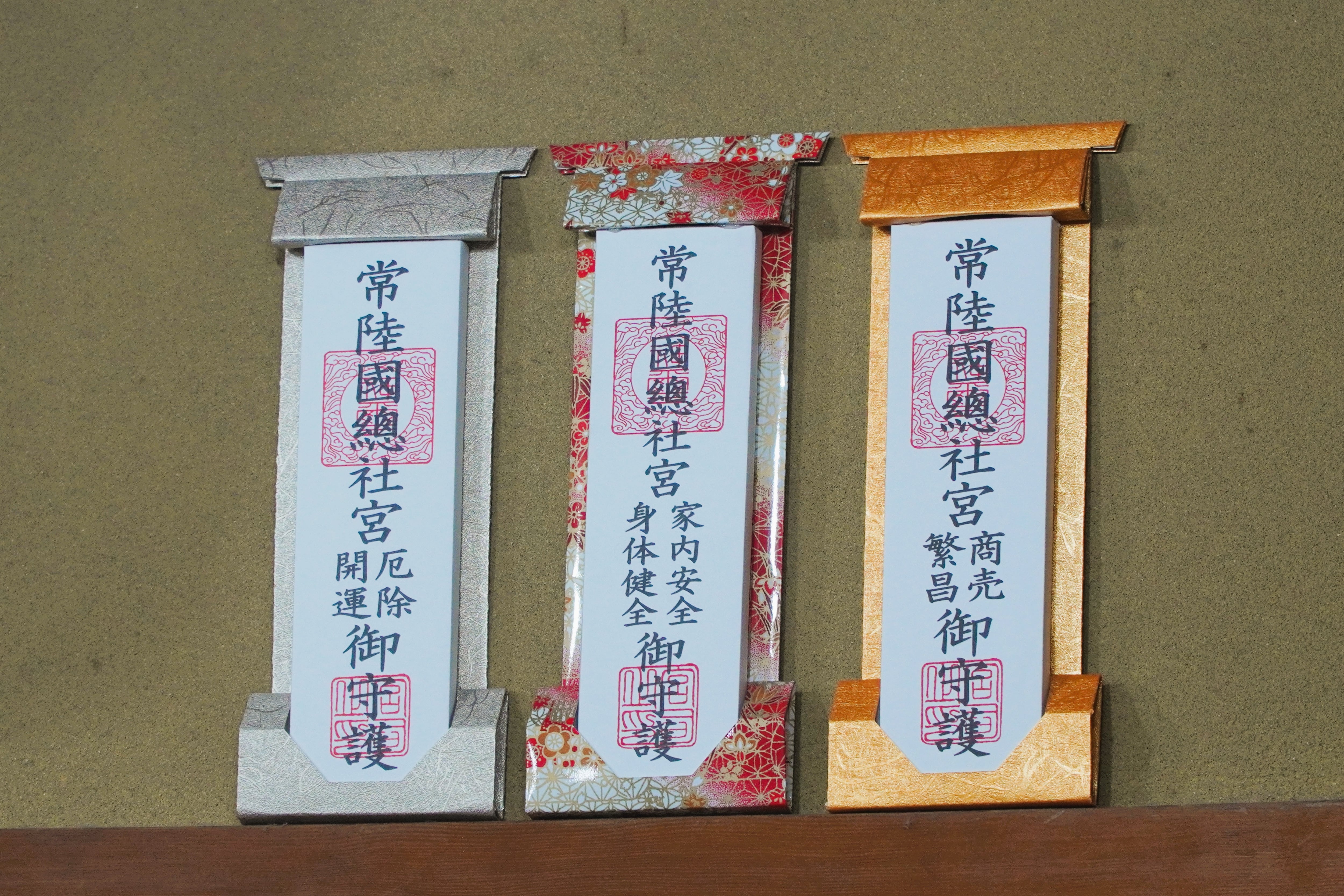 お願い事は「家内安全・身体健全(梅花)」「商売繁昌(金色)」「厄除開運(銀色)」の全3種です。